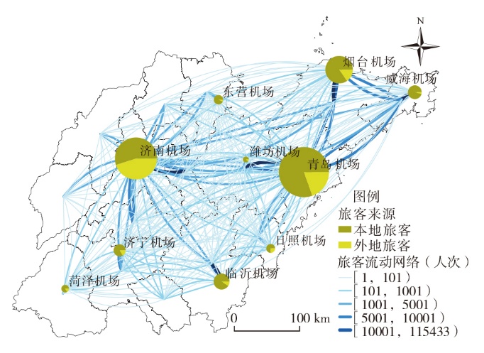 表1 山东各机场腹地客源市场差异性指数Tab.1 Market differentiation of aviation passenger hinterlands in Shandong |