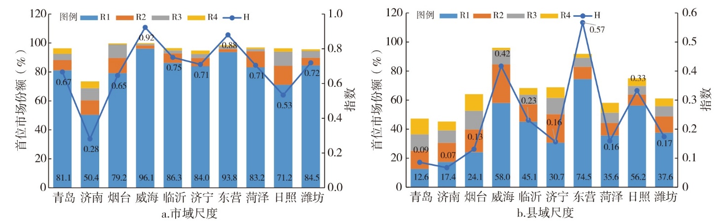 表2 山东机场群腹地客源市场优势区及竞合度情况Tab.2 Advantageous market areas and competitive integration levels of the passenger source market within the core area of Shandong airport agglomeration |