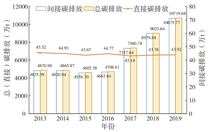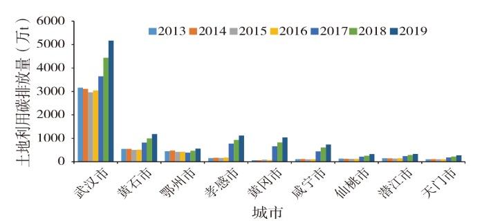 表2 武汉城市圈2013—2019年碳排放量(万t)Tab.2 Carbon emissions in Wuhan urban circle from 2013 to 2019(10000 tons) |