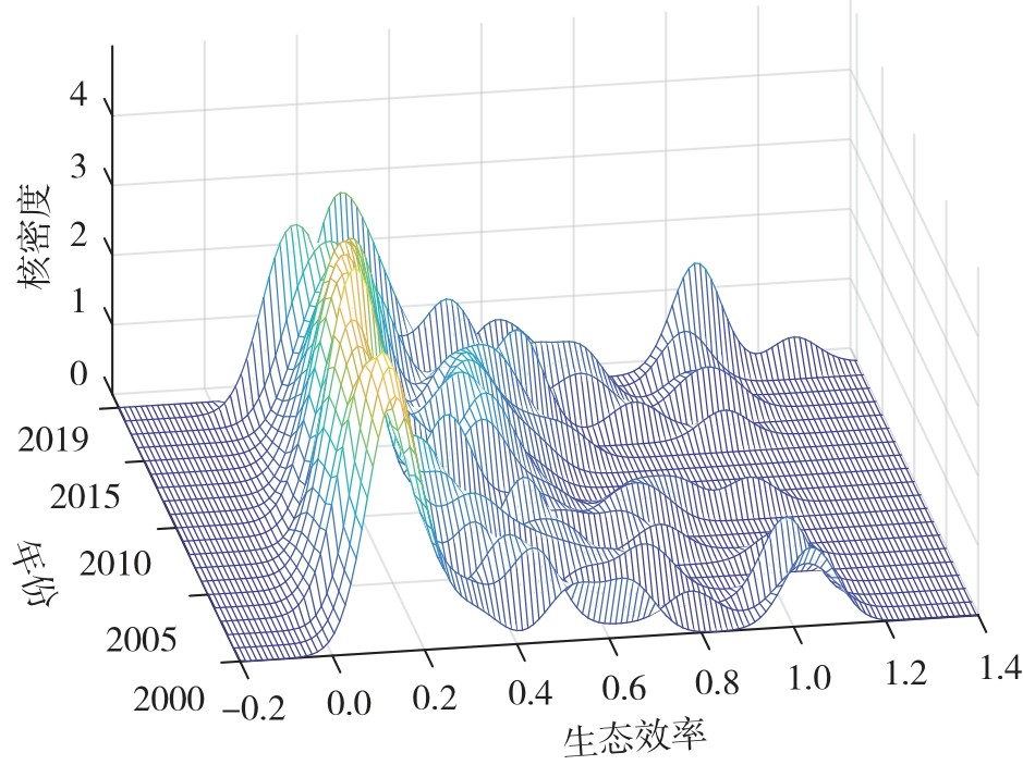 Kernel density map of ecological efficiency of counties in Fenhe River Basin from 2000 to 2019